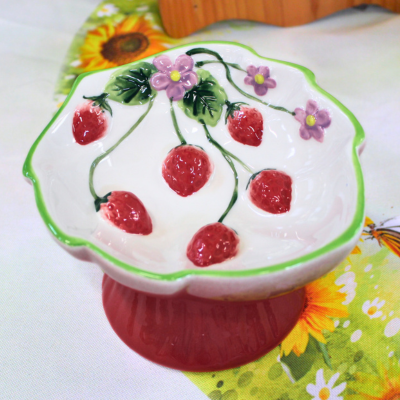 Strawberry ceramic cat bowl